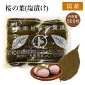 | 原材料名 | 桜葉(静岡県)、漬け原材料(食塩)/焼ミョウバン、pH調整剤 |